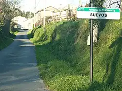 Da die Sueben offenbar schnell das lokale Vulgärlatein übernahmen, haben sie im Galicischen und Portugiesischen nur wenige Sprachzeugnisse ihrer germanischen Zunge hinterlassen. Zudem ist die Unterscheidung zwischen gotischen und suebischen Lehnwörtern schwierig, aber es gibt eine Reihe von Wörtern, die charakteristisch für Galicien und Nordportugal sind, welche den Sueben zugeschrieben werden;[98][99] oder eben den Goten – obgleich keine größere Einwanderung von Westgoten nach Galicien vor dem 8. Jahrhundert bekannt ist.[83]