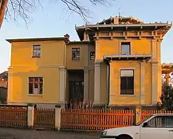 Die zweigeschossige, mitsamt Einfriedung unter Denkmalschutz[1] stehende Villa war „ursprünglich ein konsequent mittenorientierter Zentralbau von beinahe palladianischer Strenge.“[2] Der quadratische, dreiachsige Mittelbau hatte zur Straße und zur Gebäuderückseite flachere, einachsige Vorbauten; vor dem in der Straßenansicht steht ein erdgeschosshoher Standerker.