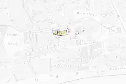 Geringe Reste weiterer Steinbauten wurden im Bereich des ehemaligen Tuchgadens und unter dem ehemals dort befindlichen Roten Haus aufgedeckt. In ihnen ist nach jüngster Forschungsmeinung ein weiterer Rechteckbau in Ost-West-Richtung sowie westlich davon ein senkrecht dazu stehendes Gebäude mit auffälliger halbrunder Apsis oder Nische zu sehen. Keramikfunde weisen in das 7. oder 8. Jahrhundert. Die Verbindung der Bauten am Dom und am Tuchgaden ergibt eine Gesamtanlage, die sich insgesamt über fast 100 Meter Breite auf dem Domhügel erstreckte.[9][12]