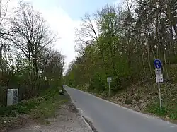 - Auf der Autobahnseite liegt neben dem Königsweg (480 Meter vom Hüttenweg nach Nordost) der Rest der ehemaligen AVUS-Südkehre. Die Betonflächen wurden 2012 entfernt.[22] Verblieben ist eine durch einen Zaun vom Königsweg abgetrennte, dreieckige und nach Südwesten breiter werdende Grünfläche zwischen den Betonsteinen 1,9 und 2,4 am Weg.[23]