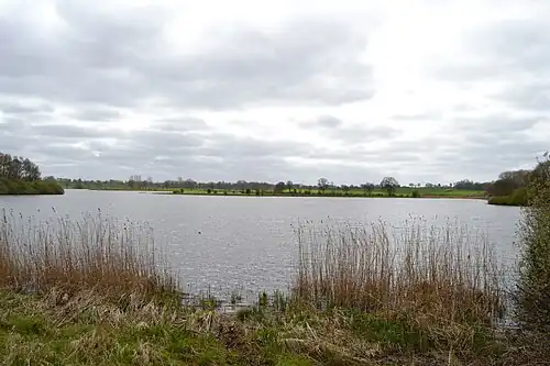 | Der Kührener Teich von der Vogelbeobachtungshütte des NABU am Nordostufer aus gesehen | ||
