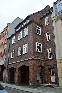 Der dreigeschossige, traufständige Backsteinbau wurde im Jahr 1936 errichtet.