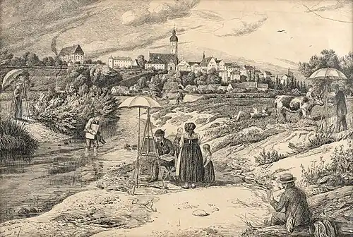 Waren es in den Jahren zwischen 1840 und 1875 in erster Linie Landschafter, die der stimmungsvollen Motive wegen immer wieder das Dachauer Land besuchten, so änderte sich das in den 1880er Jahren. Nun fanden auch Bildhauer und Grafiker den Weg nach Dachau sein Umland.[1]