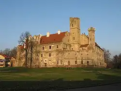 Alter umstritten; um 1800 erfolgte aber wohl zumindest ein Umbau von möglicherweise bereits vorhandenen Überresten einer Burg oder eines Schlosses aus dem 13. Jahrhundert |