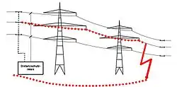 Als k-Faktor bzw. Erdfaktor bezeichnet man in der Energietechnik, insbesondere in elektrischen Energienetzen, das Verhältnis zwischen Leitungs- und Erdimpedanz. Beim Schutz von Freileitungen oder Erdkabeln kommt dem k-Faktor als einem entscheidenden Faktor der Einstellung von Distanzschutzrelais besondere Bedeutung zu.[1] Abbildung 1 stellt schematisch die Impedanz einer Leiter-Leiter-Schleife dar. In Abbildung 2 ist die Impedanzschleife eines Leiter-Erde-Fehlers dargestellt.