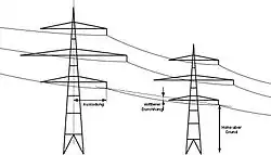 - Höhe über dem Boden und horizontaler Abstand für jeden Leiter und jeden Erdungsdraht,