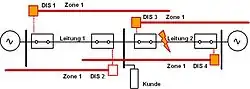 Sind die k-Faktoren bzw. Zonen eines Relais jedoch nicht korrekt eingestellt, treten Über- oder Unterreichweiten der Zonen auf (Abbildung 4). In diesem Fall wird der Fehler statt von nur 2 Relais (DIS) von drei Relais in Zone 1 gesehen, d. h. alle drei Relais lösen aus. Die Folge ist, dass eine zweite Versorgungsleitung abgeschaltet wird. Der Verbraucher ist so nun von der Versorgung abgeschnitten.
