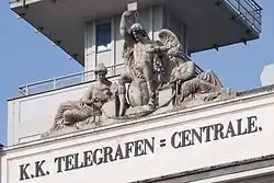 Zwischen 1870 und 1873 wurde das Gebäude als k.k. Telegrafen Centrale erbaut. Es befindet sich am Börseplatz 1. 1902-05 wurde es von Eugen Fassbender um ein zusätzliches Stockwerk vergrößert. Der Vordertrakt wird von einer Figurengruppe gekrönt, die auf einem Globus sitzt. Dies sollte die Telegraphie symbolisieren. Die Zentrale beherbergte auch eine Versuchsstation für drahtlose Telefonie und Telegraphie. 1964 wurde das Gebäude um einen Funkturm erweitert.[1] Dieser wurde 2018 im Zuge von Umbauarbeiten wieder abgebaut, da das Äußere des Gebäudes wieder in seinen Ursprungszustand versetzt werden soll.[2]