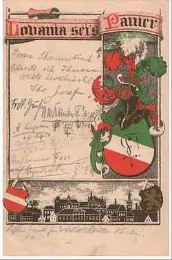 Das Erste Wappen der Lovania wurde angenommen im SS 1896. Das Zweite Wappen der Lovania wurde angenommen im WS 1897/98. Entwerfer und Gestalter beider Wappen sind unbekannt.
