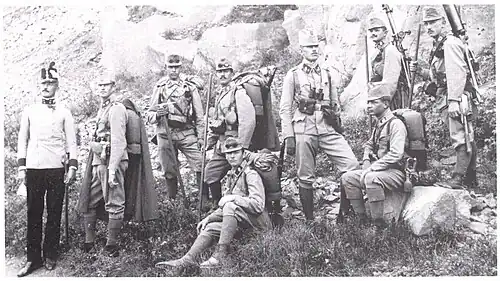 Bei den k.k. Landesschützen (ab dem 16. Jänner 1917 Kaiserschützen) handelte es sich um 1871 aufgestellte Verbände der k.k. Landwehr der österreichisch-ungarischen Monarchie. Sie umfassten seit 1906 drei als Gebirgstruppe ausgebildete Infanterie-Regimenter sowie die „Reitende Tiroler Kaiserschützen/Reitende Tiroler Landesschützen-Division“[1] als berittene Komponente.