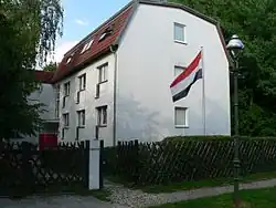 Da das alte Verbindungshaus in der Englischen Straße durch einen Bombentreffer zerstört worden war und das Grundstück inzwischen durch die Königliche Porzellan-Manufaktur Berlin genutzt wurde, siedelte die Borusso-Saxonia in den 1950er Jahren in die Nähe der neu gegründeten Freien Universität Berlin (FU) um, wo man zunächst ein gemeinsames Haus mit Suevia in Dahlem bezog, bevor 1969 das neu gebaute eigene Verbindungshaus in der Lotzestraße im Ortsteil Lichterfelde bezogen werden konnte. Der Hausbauverein Borruso-Saxonia e. V. betreibt dort seither auch ein Studentenwohnheim.[19]