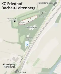 Der KZ-Friedhof Dachau-Leitenberg befindet sich „auf der Leiten“ im Norden Dachaus, nördlich des Ortsteils Etzenhausen. Auf diesem KZ-Friedhof ruhen überwiegend KZ-Häftlinge des Konzentrationslagers Dachau[1] sowie über 1200 meist bis Ende der 1950er Jahre umgebettete Leichname aus hunderten aufgelösten KZ-Friedhöfen von KZ-Außenlagern und deren „Todesmärschen“.[2] Auf diesem Ende 1944 von der SS angelegten Massengrab wurden laut Gräberliste 7609 Tote begraben, von denen 204 namentlich bekannt sind.[3]