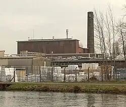 Rest eines Pfeilers an der Schleuse, durch die die Häftlinge zur Akkumulatorenfabrik gingen