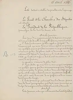 - ↑ Les lois scolaires de Jules Ferry. In: Sénat.fr. Abgerufen am 5. Juni 2023 (französisch).