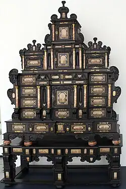 - ) Kunstschrank des Kurfürsten Johann Georg I. mit herausziehbarem Spinett, Dresden 1615, Entwurf Hans Schifferstein, Staatliche Kunstsammlungen Dresden[6]