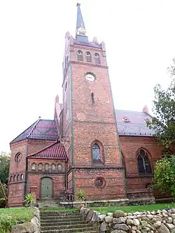 Die Dächer der Kirche und des Turms sind mit glasierten, im Muster verlegten Dachpfannen gedeckt. Der Dachreiter des Turms besitzt eine Schieferdeckung.