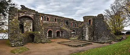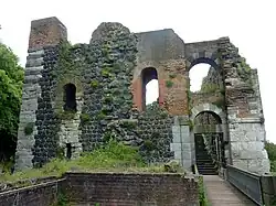 Die Ruine der Kaiserpfalz Kaiserswerth befindet sich im Düsseldorfer Stadtteil Kaiserswerth. Die Pfalz geht auf eine Klostergründung des Mönchs Suitbert(us) um 700 zurück. Zu jener Zeit schenkten der fränkische Hausmeier Pippin der Mittlere und seine Frau Plektrudis dem angelsächsischen Mönch eine durch Umrundung des alten Rheinarmes künstlich angelegte Rheininsel, auf der sich bereits ein fränkischer Fronhof – geschützt durch Erdwall, Graben und Palisaden – befand. Dieser entwickelte sich in der nachfolgenden Zeit zu einer wehrhaften Zollfeste. Am 23. Dezember 1982 wurde die Anlage in die Denkmalliste der Stadt in der Kategorie Burgen, Herrenhäuser, Befestigungen, Schlösser eingetragen.[1]