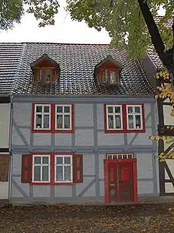 Das zweigeschossige Fachwerkhaus entstand in der Zeit um 1700. Die Fachwerkfassade wird durch Streben gegliedert. Als zierende Elemente finden sich Pyramidenbalkenköpfe sowie Fasungen an den Füllhölzern und Schwellen. Um 1840 wurde das Haus erneuert.