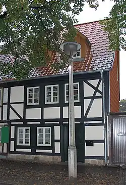 Das zweigeschossige Fachwerkhaus stammt vermutlich wie auch die benachbarten Bauten aus der Zeit um 1720. An der Fachwerkfassade findet sich die Fachwerkfigur des Halben Manns. Darüber hinaus gibt es auch eine Fußstrebe.