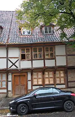 Das schlichte zweigeschossige Fachwerkhaus entstand in der Zeit um 1680. Das obere Stockwerk kragt deutlich vor. Wie im linken Nachbarhaus befindet sich im Brüstungsfeld ein Andreaskreuz. Im Laufe der Zeit waren im Erdgeschoss bestehende Wände durch massive Mauern ersetzt worden.