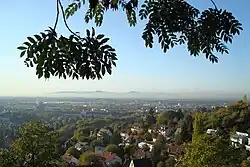 Kaiserstuhl im Oberrheingraben vom Rand des Südschwarzwalds aus gesehen (Eichhalde, Freiburg)