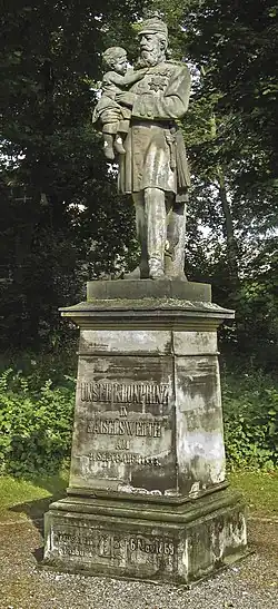 Das Kronprinzendenkmal auf dem Gelände der Kaiserswerther Diakonie, geschaffen von Paul Disselhoff, dem Enkel des Diakoniegründers Theodor Fliedner, erinnert an den Besuch des späteren Kaisers Friedrich III. als Kronprinz am 21. September 1884 und zeigt ihn mit dem vierjährigen Kinderkrankenhaus-Patienten Wilhelm Kroll auf dem Arm. Die zuunterst angebrachte Inschrift bezieht sich auf den Besuch des Diakonissenkrankenhauses in Jerusalem durch den Kronprinzen am 6. November 1869. Übersetzt heißt es: „Jerusalem, ich liebe dich“.