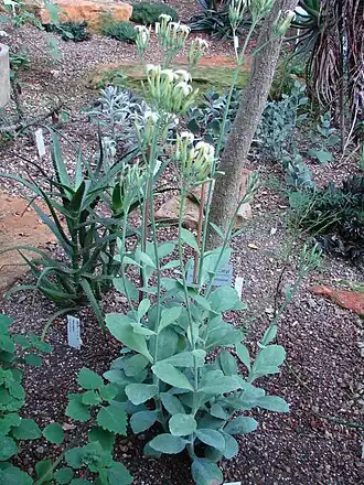 - ↑ Edith Raadts: Cytotaxonomische Untersuchungen an Kalanchoe (Crassulaceae): 1. Kalanchoe marmorata Baker und 2 neue Kalanchoe-Arten aus Ostafrika. In: Willdenowia. Mitteilungen aus dem Botanischen Garten und Museum Berlin-Dahlem. Band 13, Nummer 2, 1983, S. 377.