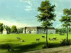 Bereits um 1312 wurde das Gut erwähnt, und zwar in einem Lehensbuch des Herzogs Heinrich III. von Brabant.[20] Bis zur Veräußerung im Jahr 1833 blieb das Gut im Besitz der Grafen von Spee. Oberhalb des Eingangstores befindet sich das Allianzwappen mit dem Hahn der von Spees und der Herren von Scheidt genannt Weschpfennig. Das Gut ist heute ein landwirtschaftlicher Betrieb im Besitz der Familie Baum-Underberg.