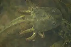 Ausgewachsene Individuen ernähren sich in erster Linie von verschiedenen Insekten und Würmern. Ihre im Wasser lebenden, mit Kiemen ausgestatteten Jungtiere fressen in den ersten sechs Wochen zunächst Algen, kleine Krebstiere und Wasserinsektenlarven, danach werden auch Würmer, Schnecken und Kaulquappen als Futter angenommen.[1] Zu Beginn der Regenzeit, meist ab November werden die Eier von den Weibchen nach der Begattung am Rande kleiner Tümpel einzeln oder in kleinen Gruppen an Wasserpflanzen oder Steine angeheftet. Im Durchschnitt werden 814 Eier (maximal 1340) mit einem Durchmesser von 3,5 Millimetern abgesetzt.[2] Nach zwei bis vier Wochen schlüpfen die Larven. Die Metamorphose, d. h. die Umwandlung der aquatischen Kaulquappe zur terrestrischen Form erfolgt frühestens nach zwei Jahren, kann aber auch bis zu vier Jahre dauern. Die Tiere werden nach einer Entwicklungszeit zwischen vier und sechs Jahren geschlechtsreif.[2]