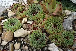 - ↑ Vgl. Henk 't Hart, Bert Bleij, Ben Zonneveld: Sempervivum. In: Urs Eggli (Hrsg.) Sukkulenten-Lexikon. Crassulaceae (Dickblattgewächse). Eugen Ulmer, Stuttgart 2003, ISBN=3-8001-3998-7, S. 351 f. und Manuel Werner: Hauswurz-Arten der Alpen. Sempervivum und Jovibarba. – In: Avonia – Die Fachzeitschrift der Fachgesellschaft andere Sukkulenten 28:4 (2010), S. 138, 140