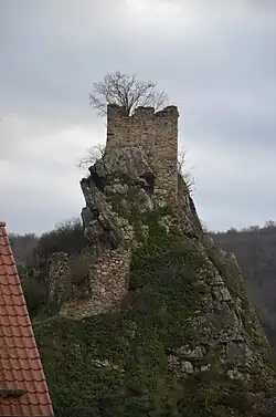 Um das Jahr 1150 entstanden oberhalb des heutigen Ortes die Burganlagen Stein, Kallenfels und Stock im Hahne. Die Burg oder Schloss Stein entstand auf der oberen Felskuppe. Das Schloss Kallenfels (Kaldenfels) lag 80 Fuß unter der Feste Stein. Weiter unterhalb entstand der Stock im Hahne, ein Wohnhaus mehr ein turmartiges Gebäude zur Verteidigung des unterhalb liegenden Weges als zur Ritterwohnung bestimmt.