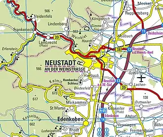 24. Tobias Kauf: Pfälzer Weinsteig, Gesamtroute (Memento vom 23. Juli 2014 im Internet Archive). In: outdooractive.com, 10. November 2010, abgerufen am 25. Januar 2014.
