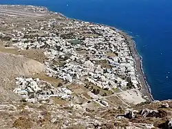 Im Ort befinden sich zahlreiche Hotels, Pensionen, Läden, Tavernen, Restaurants, ein Supermarkt und ein Kino. Der Strand ist von einer belebten, autofreien Promenade gesäumt. Von der Bushaltestelle direkt am Strand aus kann man die Inselhauptstadt Fira erreichen. Über das sternförmig aufgebaute Busnetz ist es von hier aus dann sehr einfach, auch in alle anderen Orte der Insel zu gelangen.