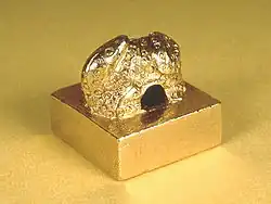 Im selben Jahr fand man auf der nahe gelegenen kleinen Insel Shikanoshima ein chinesisches Goldsiegel mit den Schriftzeichen für „König von Na des Staates Wa, (Vasall?) der Han“ (漢倭奴国王印), seit 1931 ein Nationaler Schatz Japans. In einem Zertifikat „Erklärung des Goldsiegels“ (Kin’in-ben 金印弁) ordnete Kamei diesen sensationellen Fund einer Stelle im Buch der Späteren Han (Hou Hanshu) zu. Dieser chinesischen Chronik zufolge erhielt im Jahre 57 n. u. Z. eine Gesandtschaft aus Na im Staat Wa (Japan) vom Han-Kaiser Guangwu (光武) ein Siegel. Kamei machte das Goldsiegel unter Gelehrten im ganzen Lande bekannt und stimulierte weitere Forschungen. Takeda Tadayoshi (竹田定良, 1738–1798), ein mit Kamei heftig konkurrierender Anhänger des Neokonfuzianismus von Zhu Xi (jap. Shuki) und Leiter der zweiten Akademie des Fukuoka Clans Shūyūkan (修猷館[5]), verfasste ebenfalls einen „Kommentar zum Goldsiegel“ (Kin’in-gi 金印議), der allerdings den Erklärungen Kameis inhaltlich nichts hinzuzufügen hatte.