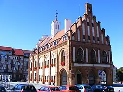 - Das spätgotische Rathaus auf dem Marktplatzes wurde Mitte des 14. Jahrhunderts erbaut und nach dem Zweiten Weltkrieg restauriert. Sein Ostgiebel (Eingangsseite) entstand ursprünglich im 15. Jahrhundert, sein Westgiebel am Ende des 16. Jahrhunderts.