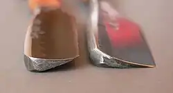 Im Vergleich zu einem westlichen Rasiermesser hat ein Kamisori eine asymmetrische Klingenform und wird üblicherweise nur mit einer Seite zur Wange genutzt.