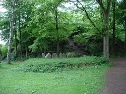 - Im östlichen Hügelteil wurden zwei Urnen in Steinpackungen gefunden, von denen ein Gefäß in die Periode V (950 bis 720 v. Chr.) der nordischen Bronzezeit datiert werden kann.