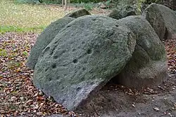 Etwa einen Meter südwestlich der Kammer lag auf der alten Oberfläche ein etwa 0,6 m hoher Stein mit Schälchen, der nicht zur Kammer gehörte. Ihn bewertet man als „heiligen Stein“.