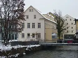 Das Haus Kanalstraße 12/1 gilt als ein seltenes Beispiel für frühe Industriebautypen Württembergs und wurde unter anderem deshalb unter Denkmalschutz gestellt.[2] Der traufständige Satteldachbau wurde in Fachwerkbauweise errichtet, besitzt aber einen massiven Sockel. Er weist angedeutete Giebelfußgesimse und Eckquaderungen auf und steht auf einem Gelände, das schon im Mittelalter wirtschaftlich genutzt wurde. Bodenzeugnisse deuten auf die Ansiedlung von Gerbereien und Leimsiedereien im Bereich der heutigen Kanalstraße 12/1 und dem nördlich davon gelegenen Gebiet hin.