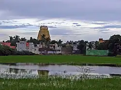 Der Ekambaranatha-Tempel (auch Ekambaresvara-Tempel) ist der größte Tempel Kanchipurams. Er ist dem Gott Shiva in seiner Gestalt als „Herr des einen Mangobaums“ (Ekambaranatha) geweiht. Die ältesten Teile des Tempels gehen auf die Pallava-Zeit zurück, doch wurde er im Laufe der Jahrhunderte immer wieder umgebaut und erweitert. Heute stellt sich der Ekambaranatha-Tempel als weitläufiger Komplex mit einer Fläche von 9,5 Hektar dar. Um das Hauptheiligtum gruppieren sich fünf konzentrische Bereiche (Prakara) mit zahlreichen Nebenschreinen, Korridoren, Säulenhallen und zwei Tempelteichen. Im Mittelpunkt der Verehrung steht neben dem Linga im Hauptschrein ein heiliger Mangobaum im Hof des dritten Prakara. Der Haupteingang an der Südseite des Tempelkomplexes wird von einem 59 Meter hohen Torturm (Gopuram) gekrönt, der zu den höchsten in Südindien gehört. Er wurde Anfang des 16. Jahrhunderts während der Vijayanagar-Zeit errichtet.[13]