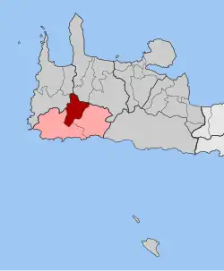 | Lage in der Gemeinde Kandanos-Selino und im Regionalbezirk Chania | |||