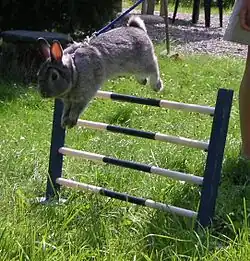 Hoch- oder Weitsprung-Wettbewerb wird in Deutschland sehr selten durchgeführt. Die gegenwärtigen Rekordmarken für diese Disziplinen liegen bei drei Metern in der Länge und 106 cm in der Höhe. Der Weitsprungrekord wurden in Dänemark im Jahr 1999 aufgestellt, der im Hochsprung wurde im Jahr 2014 in Schweden erreicht. In Deutschland ist Hoch- und Weitsprung im ZDRK (Zentralverband Deutscher Rassekaninchenzüchter e. V.) nur unter sehr strikten Auflagen zugelassen, um Überforderung der Tiere zu verhindern.