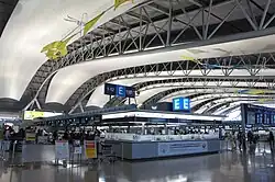 Innenansicht des geschwungenen Dachs von Terminal 1 im Check-In-Bereich