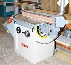 Die Kantenschleifmaschine ist besonders gut geeignet, um durch Schleifen die Oberflächenqualität von plattenförmigen Bauteilen, Balken, Rahmen und Formteilen aus Massivholz oder Holz mit furnierten Oberflächen zu verbessern. Es können schräge, gerade oder geschweifte Kanten bearbeitet werden. Bei einem ausreichend breiten Schleifband ist auch das Einpassen von Vollholzschubkästen möglich.