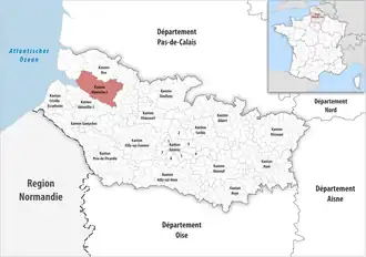 - ↑ Nur der nördliche Teil der Gemeinde, der Rest gehört zum Kanton Abbeville-2.
