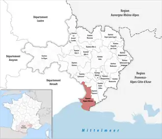 ![]() Lage des Kantons Aigues-Mortes im Département Gard | |