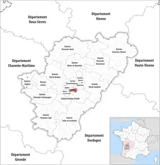 ![]() Lage des Kantons Angoulême-3 im Département Charente | |