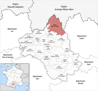 ![]() Lage des Kantons Aubrac et Carladez im Département Aveyron | |