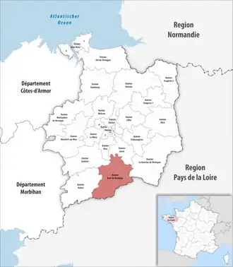 ![]() Lage des Kantons Bain-de-Bretagne im Département Ille-et-Vilaine | |