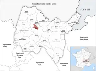 - ↑ Nur der südliche Teil der Gemeinde, der Rest gehört zum Kanton Bourg-en-Bresse-1.